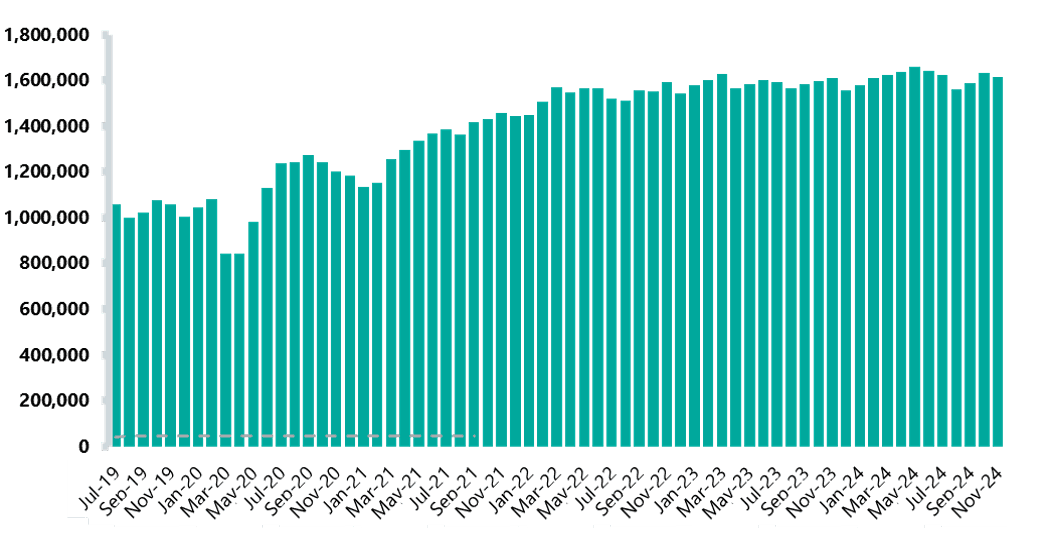 - In December 2024, there were 2.24 million diagnostic tests, which is 8% lower than November. However, across 2024 there were a record number of tests carried out each month, apart from March (see figure 2).