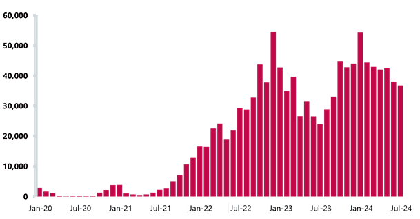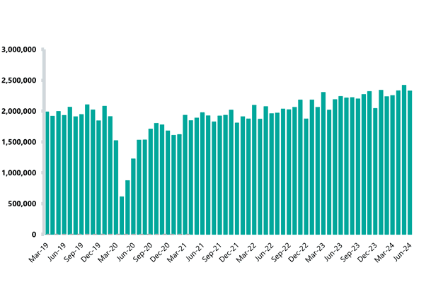 Demand for urgent and emergency care has been extremely high and therefore activity has followed suit. This has been the busiest year ever, with the first six months of the year seeing record highs for each month in terms of A&E attendances. June recorded 2.3 million A&E attendances. This is 3.3% more than June 2023 and 8.8% greater than five years ago in June 2019, before the pandemic. Similarly, emergency admissions also recorded the busiest June on record with nearly 537,000 emergency admissions, 1.5% higher than five years ago.