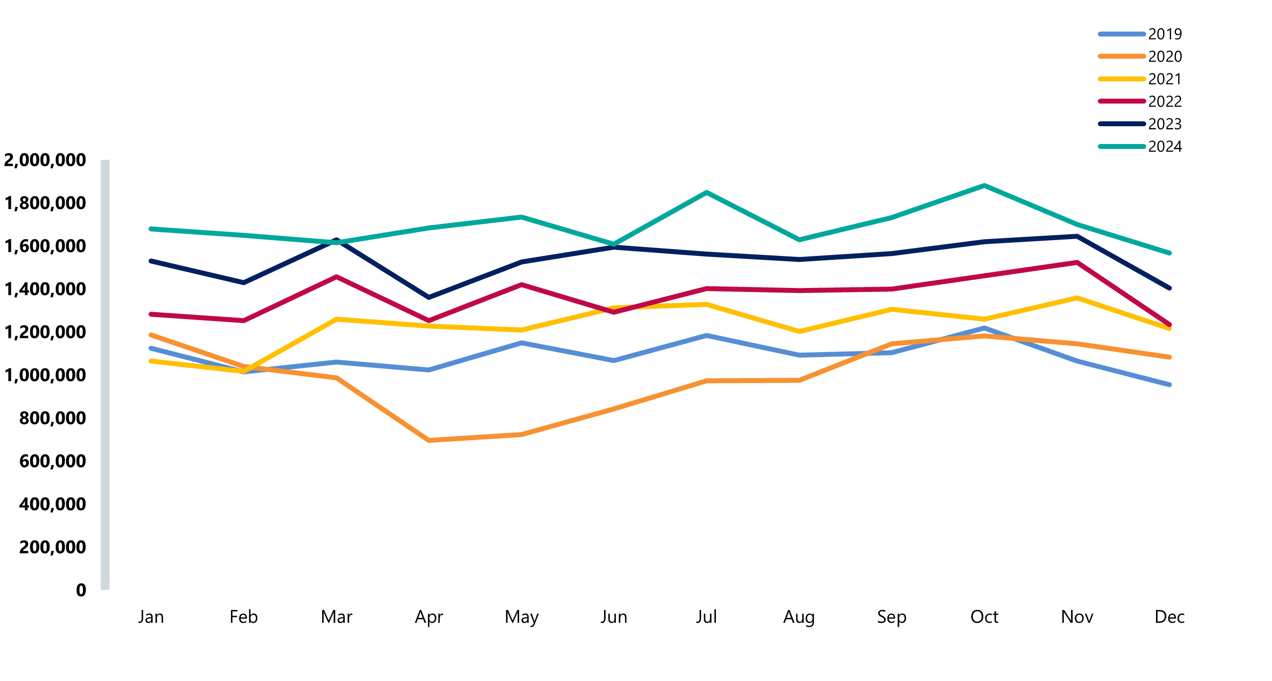 - Care contact activity levels fell by 5.8% from November, dropping to 8.47m care contacts recorded in December. Activity was 8.5% higher than the same time last year.