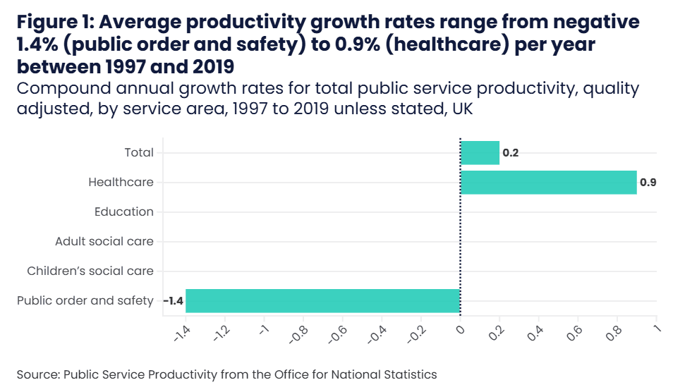 After rising for the previous two decades, overall productivity began falling by the end of the 2010s and has worsened following the COVID-19 pandemic. [12] Recent increases in staffing have often not translated into increases in volume of activity for many types of care. [13] However the extent of this is not fully clear as current measures of productivity capture volume rather than value of care, so falls in productivity growth are not as large as the data may suggest. Recent high inflation, particularly in energy and medicines prices, have contributed to a lower productivity figure. Nevertheless, significantly increasing productivity is therefore one of the greatest challenges facing the NHS. Improving healthcare productivity has a key role to play in lifting the UK’s overall productivity malaise.