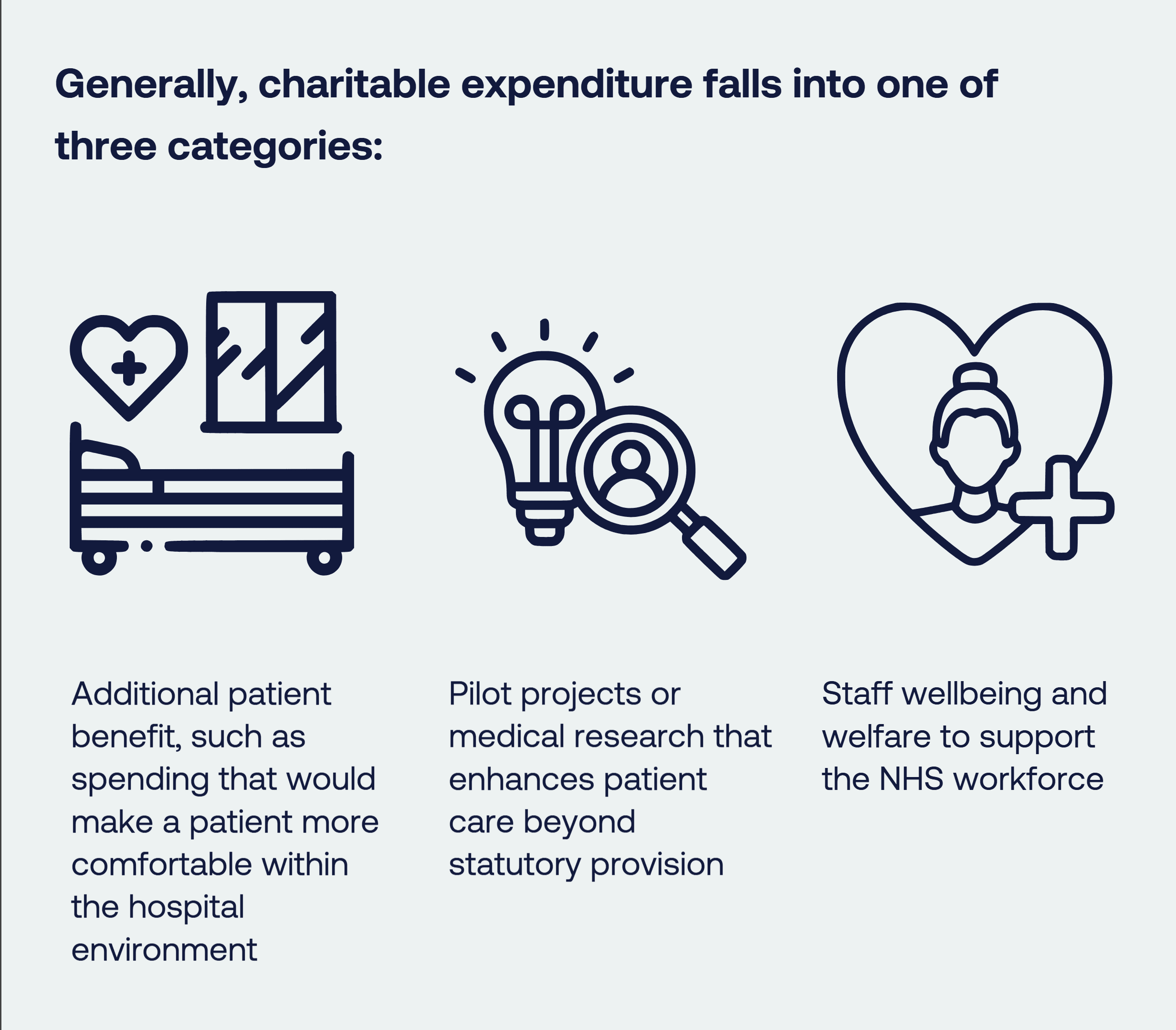 Ultimately, all charities must be for the public benefit – in the case of NHS charities, this is interpreted as ensuring that all expenditure ultimately has benefit to the patient. The Corporate Trustee of each charity is responsible for ensuring that there are strong decision-making processes in place. These processes must ensure that expenditure is legally charitable, is additional to statutory spending, and is for public benefit.